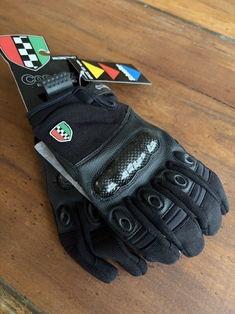 The Corazzo Carbone Glove is packed with features, top quality fabrics and a fabulous fit that is perfect for riding your motorcycle or scooter. Using fabrics like Keprotech from Schoeller, we integrated the popular Carbon knuckle design into the ultimate urban riding glove. The palm is a very innovative design, using “islands” of super abrasion resistant Keprotech, overlaid a mesh, designed to keep your hands both safe, and ventilated. Finger vents, silicone fingertip lever-grippers, and a velcro wrist tab bring both style and function to these gloves. FEATURES ” Scheoller Keprotec® construction, highly abrasion resistant with 4-way stretch properties. ” Mesh palm underlay providing impressive ventilation. ” Over-knuckle carbon-fiber impact protection armor. ” Key palm padded areas. ” Silicone finger tips for grippy feel on controls. ” Velcro wrist clusure. ”